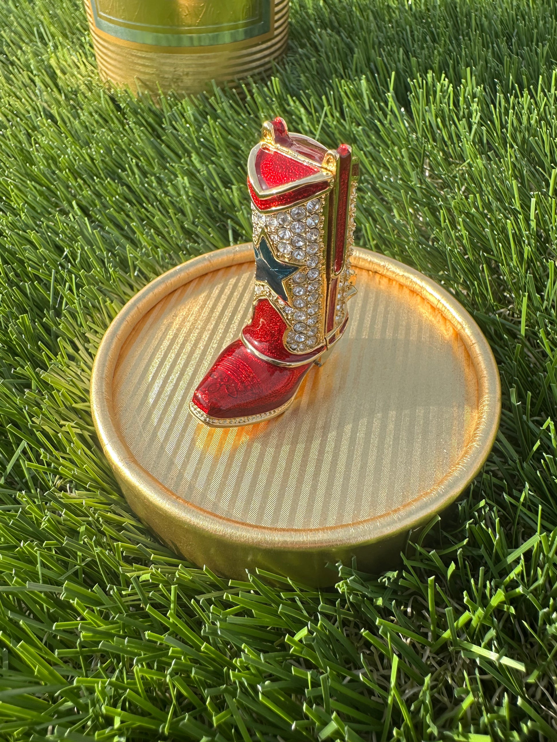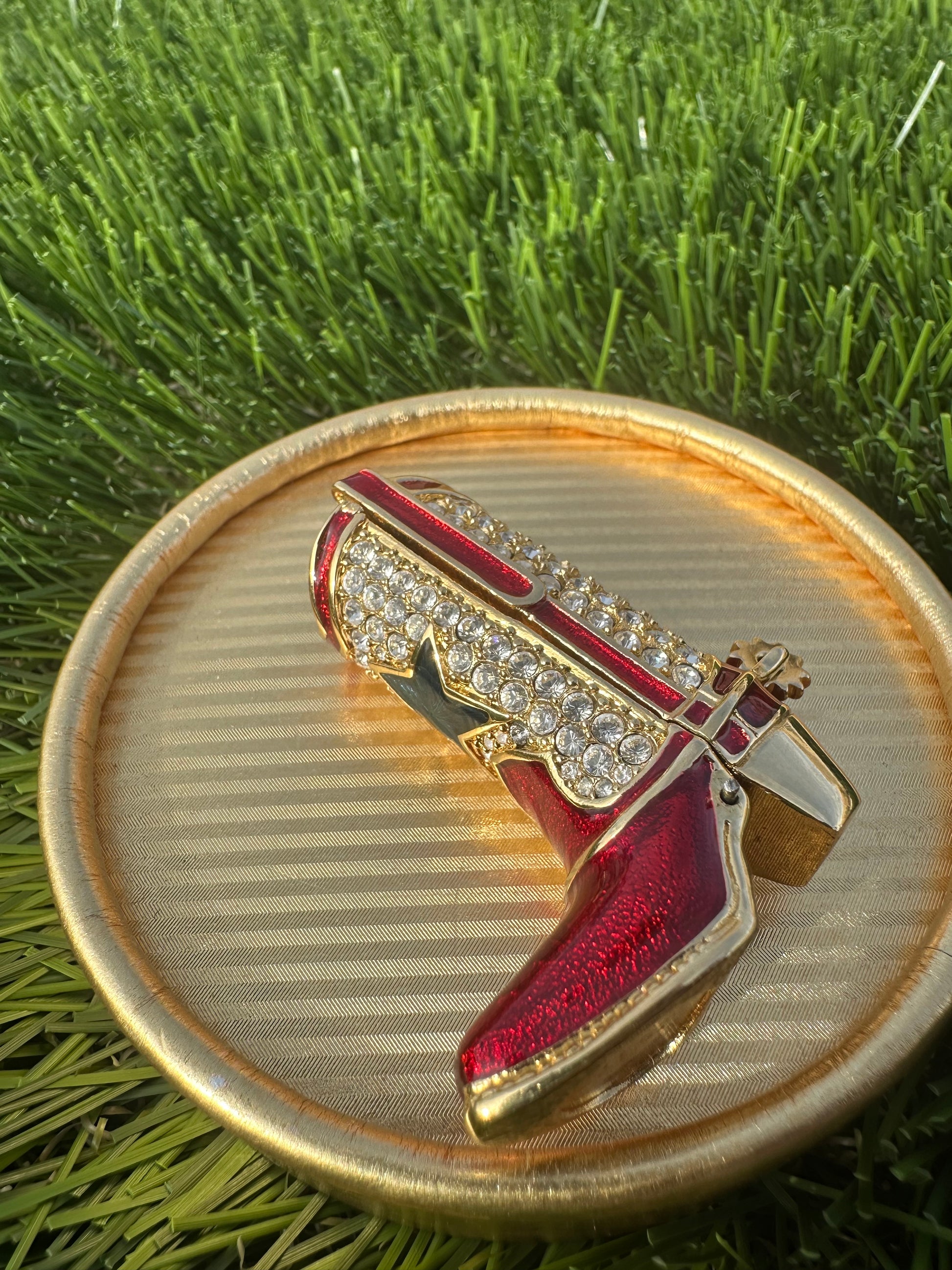 Estée Lauder Cowboy Boot Solid Perfume Compact Trinket with Spinning Spur